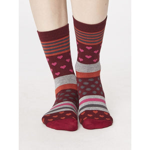 Den lekfulla mixen av olika mönster tillsammans med en intressant färgkombination av vinrött, cerise och grått gör dessutom dessa strumpor extra snygga. Men dessa strumpor är även så mycket mer än bara utseende. De är nämligen tillverkade i bambuviskos som omfamnar dina fötter otroligt mjukt och skonsamt. Är du van vid vanliga strumpor i bomull kommer du garanterat känna stor skillnad i komfort. Bambun ser även till att dina fötter håller sig torra och fräscha.
