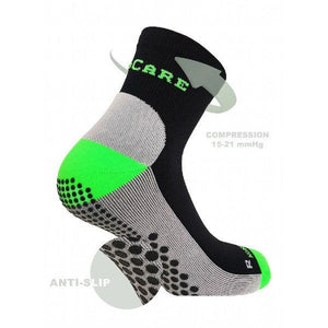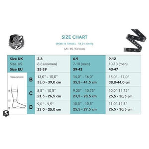Att använda rätt strumpor under träningen kan vara avgörande för hur mycket du orkar prestera. Stödstrumpor ökar syresättningen till musklerna och gör att dina ben håller sig pigga längre under din aktivitet. De här träningsstrumporna från Supcare har en kompression på 15-21 mmHg som stimulerar blodcirkulationen mycket effektivt. Dessutom har de halkskydd på undersidan foten som ger dig extra grepp - perfekt för inomhusträning. Se gärna måttabellen på bild 3 för att vara säker på att du väljer rätt storlek.
